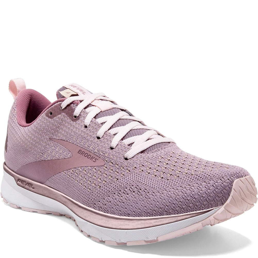 - 120337-286 Brooks Women’s Revel 4 Running Shoes – Almond/Metallic/Primrose